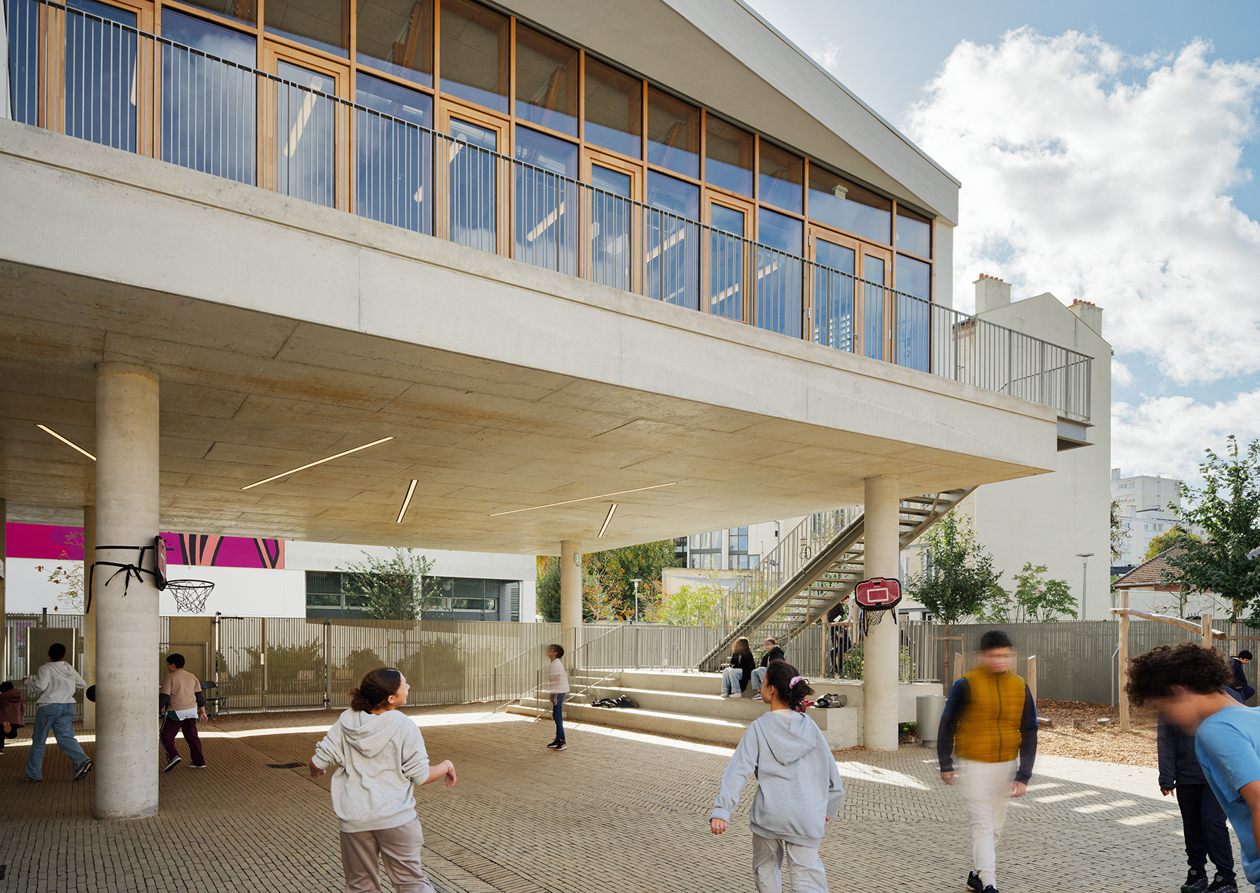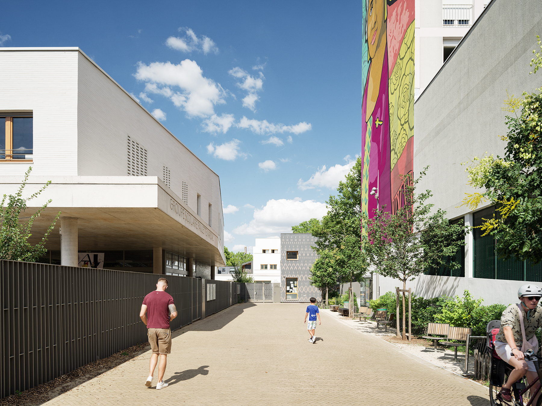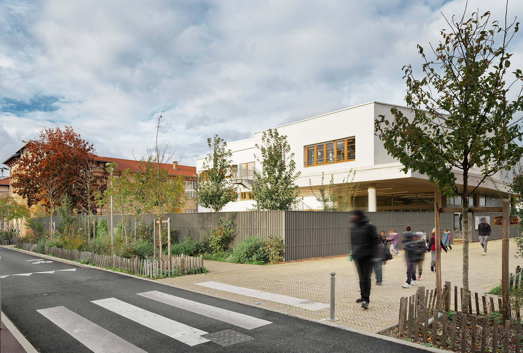 Le projet s’appuie également sur la création d’un parvis assurant l’accessibilité PMR et la sécurité des enfants. Il s’agit d’une opportunité pour reconsidérer les espaces d’usage autour du temps scolaire et d’établir de nouvelles connexions avec l’école maternelle, les parents ou les habitants du quartier.